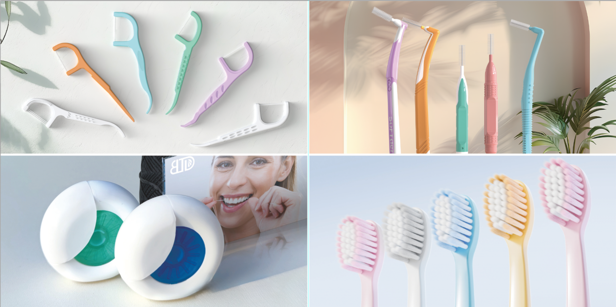 牙间刷、软橡胶牙间刷、牙线棒、牙线、牙刷等。